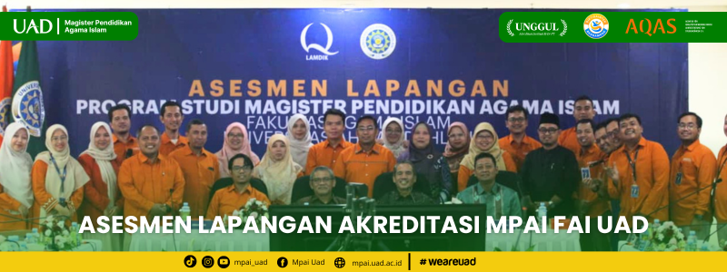 Program Studi Magister Pendidikan Agama Islam (MPAI) Fakultas Agama Islam Universitas Ahmad Dahlan kembali melaksanakan Asesmen Lapangan Akreditasi pada tanggal 14–15 April 2026. Kegiatan ini merupakan bagian dari proses reakreditasi oleh LAMDIK sebagai bentuk komitmen berkelanjutan dalam menjaga dan meningkatkan mutu pendidikan tinggi.